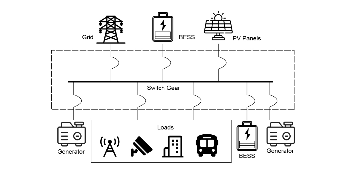 Utilizzato principalmente in fabbriche, centri commerciali e luoghi simili, questo sistema facilita la riduzione dei picchi, l'accumulo di energia nelle ore non di punta e le funzioni di alimentazione di riserva.